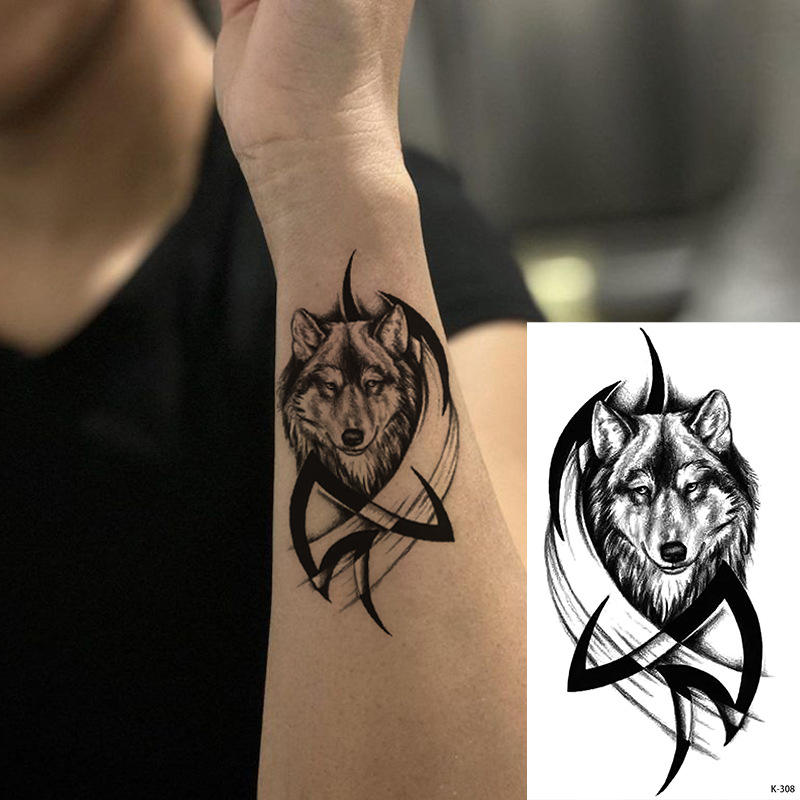 Tatuajes Temporales Impermeables Unisex FX-T316, Diseños de Animales (Lobo), Alfabeto, Flores y Mariposas para el Cuerpo y Brazos, Tatuajes Personalizados