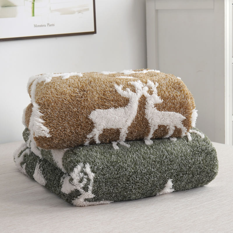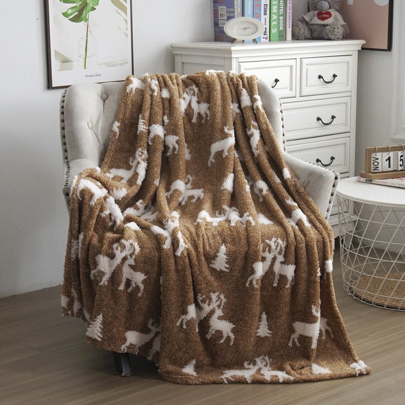 FY 100% poliéster dos pequeños ciervos estampado lindo regalo lavable a máquina lavable al agua mantas Jacquard tapiz