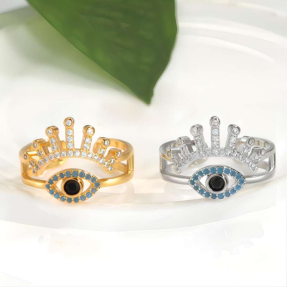 Anillo Ajustable de Moda FY con Diseño Bohemio, Ojo Turco, Pupila Azul del Diablo, Mano de Hamsa y Circonita Cúbica para Mujer