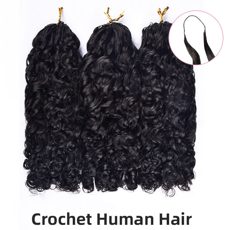 FYD Venta al por mayor 24 pulgadas Invisible String Design Pre Looped Crochet Cabello humano Kinky Curly Feathers Extensiones de cabello de ganchillo