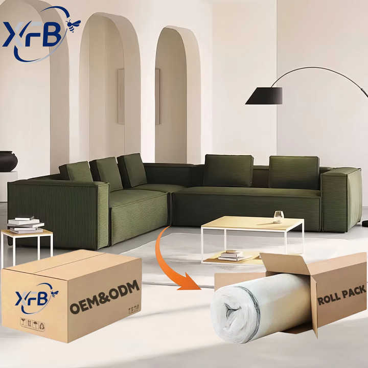 Sofá Seccional Modular de Tela, Chaise Longue Esquinero, Sofá Comprimido al Vacío en Caja, Muebles de Sala de Estar, Diseño Minimalista en Forma de L