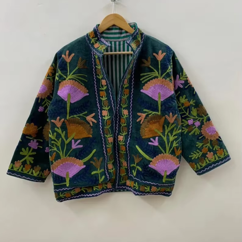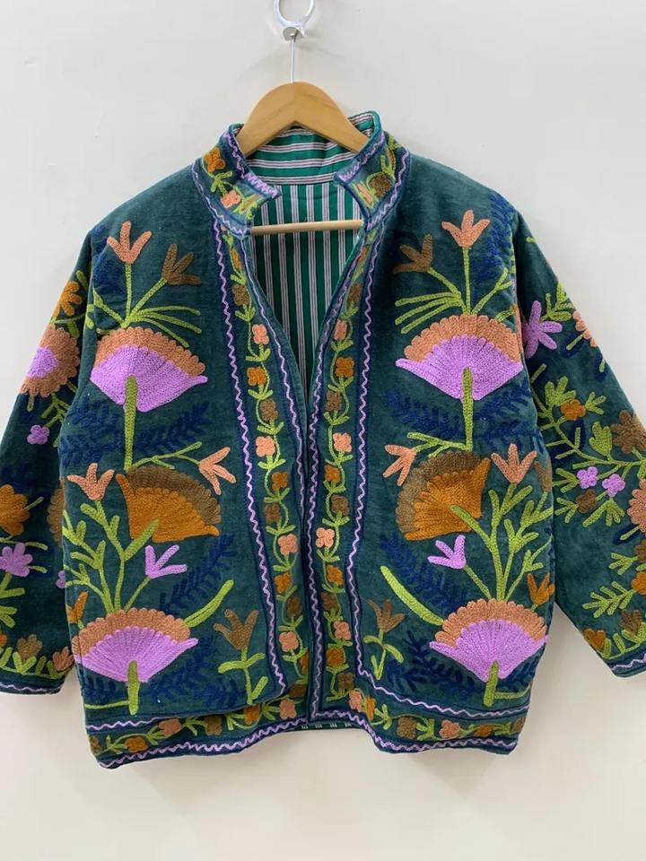 Product name:Green Velvet Suzani Embroidery Jacket