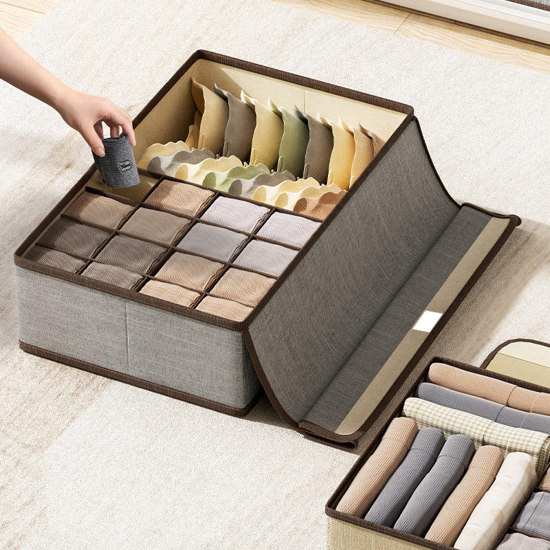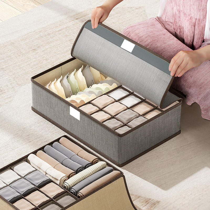 Caja de almacenamiento de ropa interior de tela, rectangular, plegable, con compartimentos, estilo cajón, organizador de armario para calcetines y ropa.