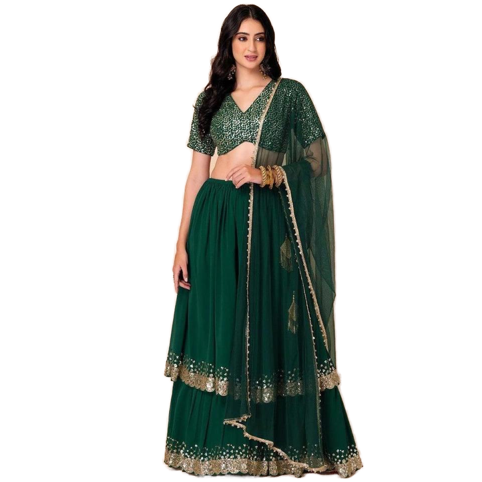 Fabuloso verde oscuro lentejuelas Georgette vestido de noche Lehenga Choli para fiesta