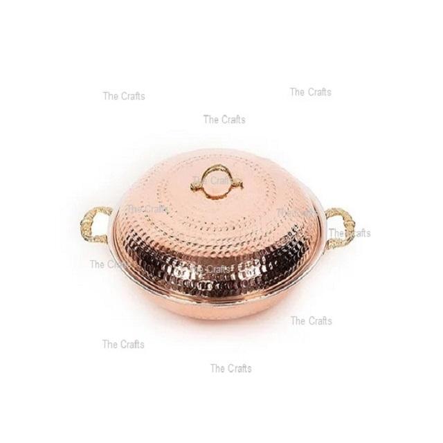 Olla para Servir Alimentos Ecológica Exclusiva con Asas de Latón, Diseño Martillado de Cobre, Gran Capacidad para Uso en Hoteles