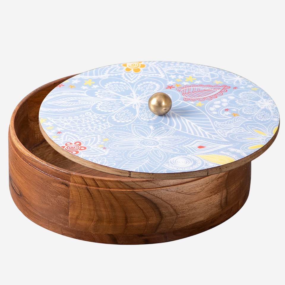Fabuloso diseño pintado a mano diseño floral caja de madera Roti con tapa ecológica Sheesham madera Chapati cazuela al mejor precio
