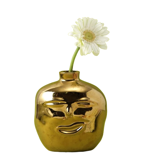 Maceta de flores de metal de color dorado con diseño de cara con color y tamaño personalizados con tamaños 12x7,5x15 cm a precio directo de fábrica