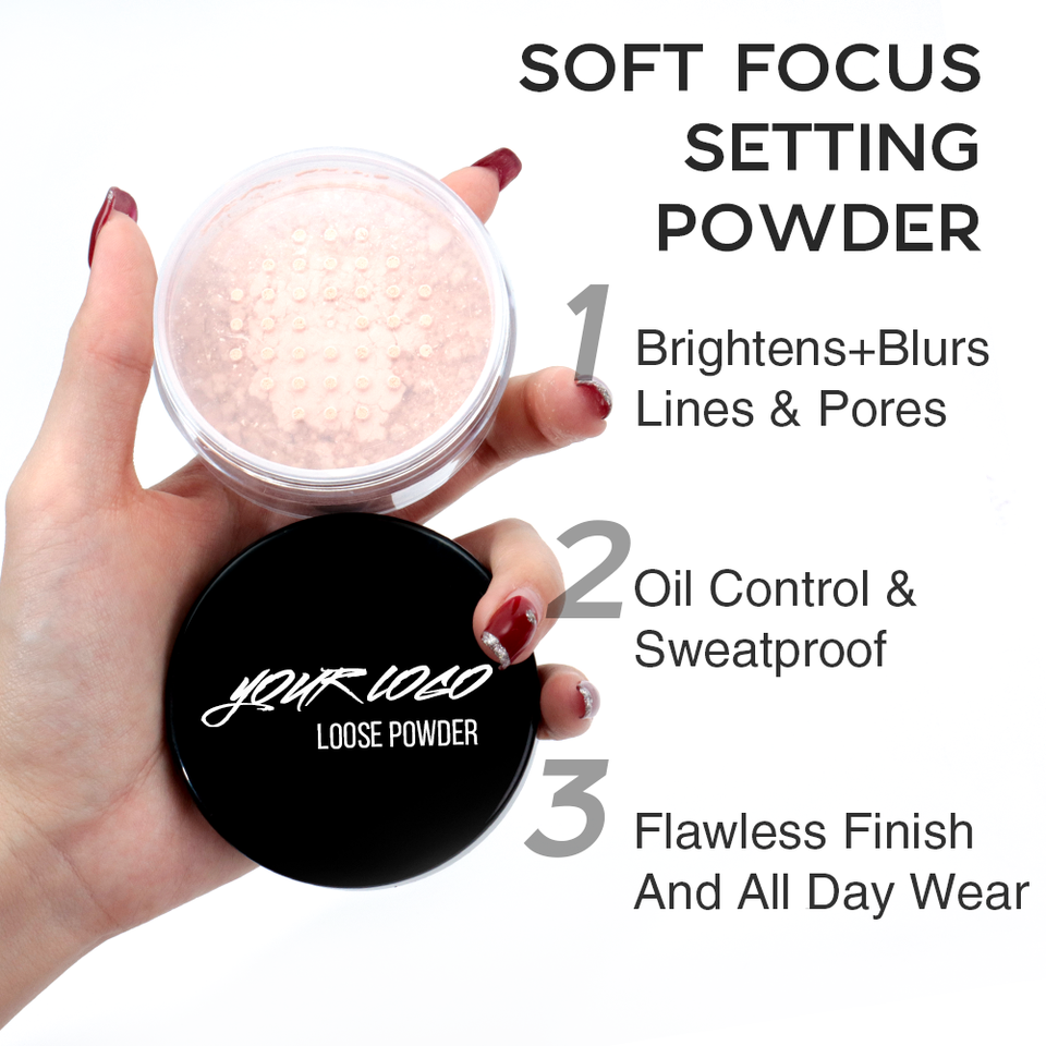 Iluminador Facial Translúcido Sin Talco, Marca Privada, Vegano, Resistente al Agua, Control de Grasa, Polvo Fijador Suelto de Lujo con Brillo