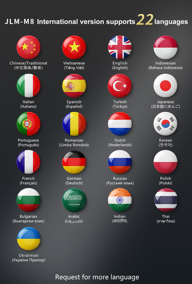 22 idiomas a elegir, contáctenos para soporte en su idioma local