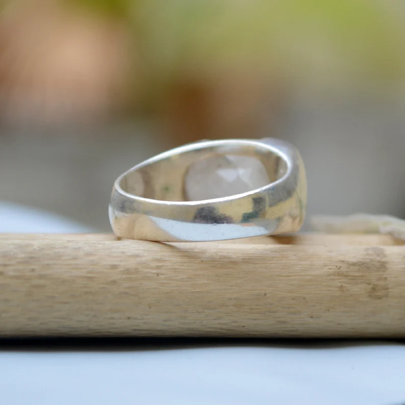 Piedra lunar azul facetada, Plata de Ley 925, regalo de boda cristiano bohemio, anillo de sello de declaración ecológico, piedra preciosa Natural