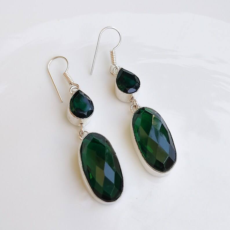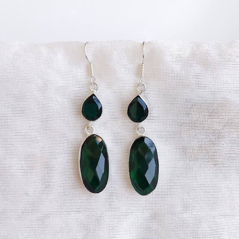 Pendientes de Piedras Multicolores con Esmeralda Facetada, Pendientes de Cristal Plateados, Joyería Boho Hecha a Mano, Regalo para Ella