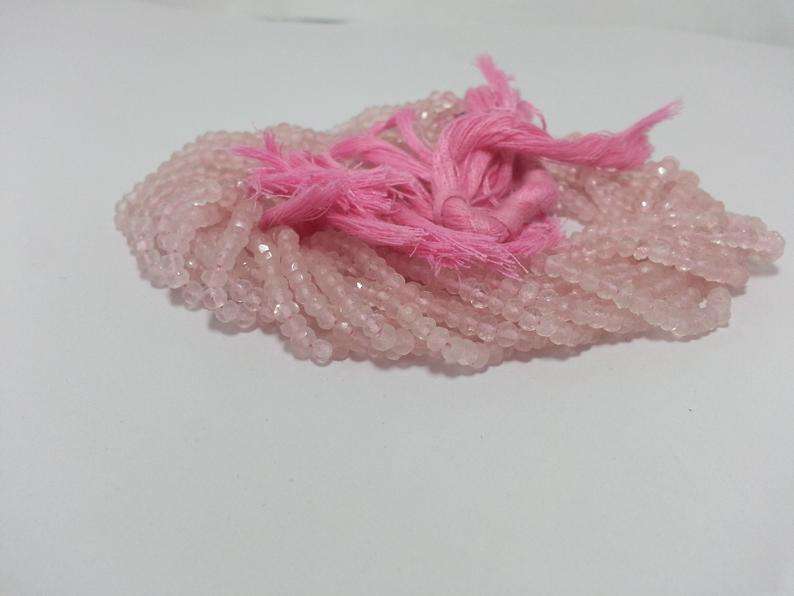 Cuentas facetadas de cuarzo rosa, piedra Natural de 4mm, fabricación de joyas, Color rosa 100% Natural, AAA + grado rquarzb3