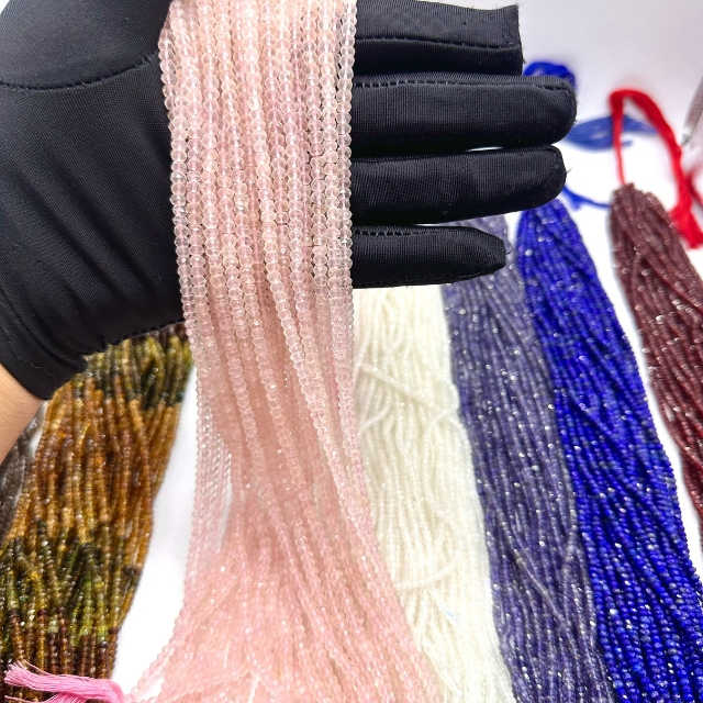 Cuentas Rondelle de 3mm de cuarzo rosa facetado hebras de piedras preciosas sueltas rosas
