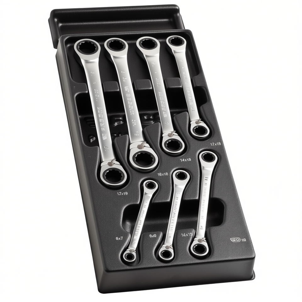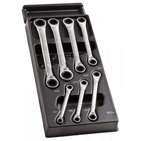 Juego de llaves de trinquete Facom 15 con anillo desplazado en ángulo y ranuras, en bandeja de espuma