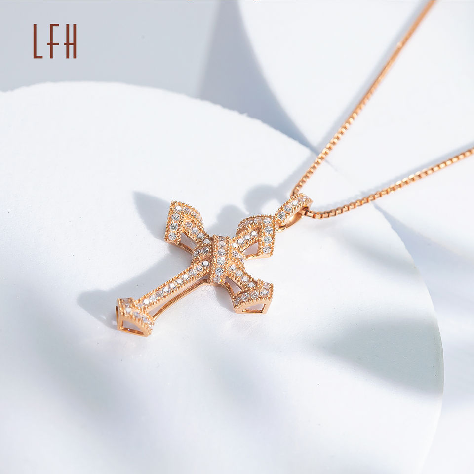 Collar de Cruz de Circonita Cúbica con Joyería de Oro Real de 18k de Fábrica, Joyería de Oro Real al por Mayor, Oro 18k Original Au750, Oro Real de 18k