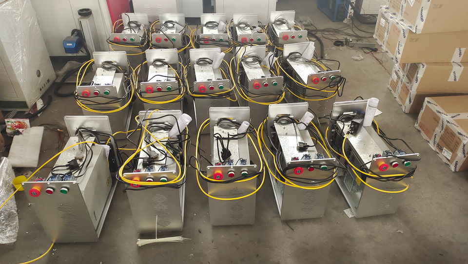Sistema de marcado láser automático con cabeza ajustable y cinta transportadora para marcar componentes