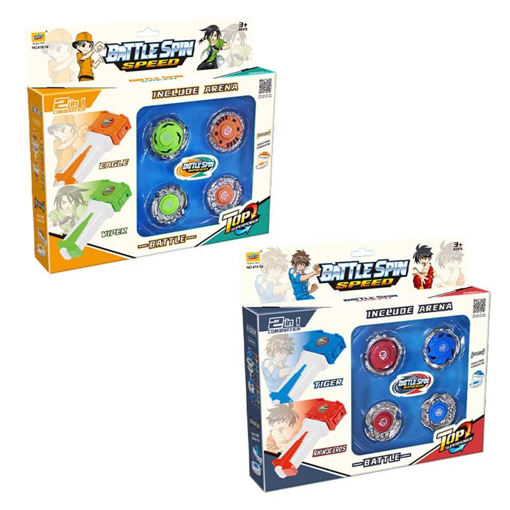 Factory 2 in 1 combination plastic arena metal powerful battle gyros toy set spinning top bey blades for kids