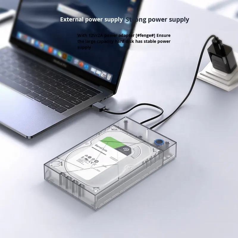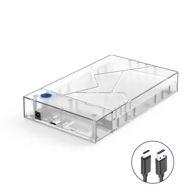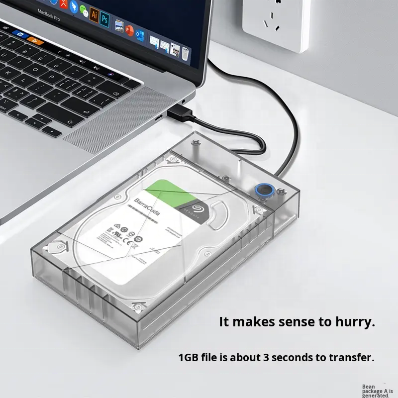 Caja de Disco Duro Móvil Transparente de 3.5 Pulgadas, Caja Externa para Disco Duro Mecánico de Estado Sólido SATA, Instalación sin Herramientas