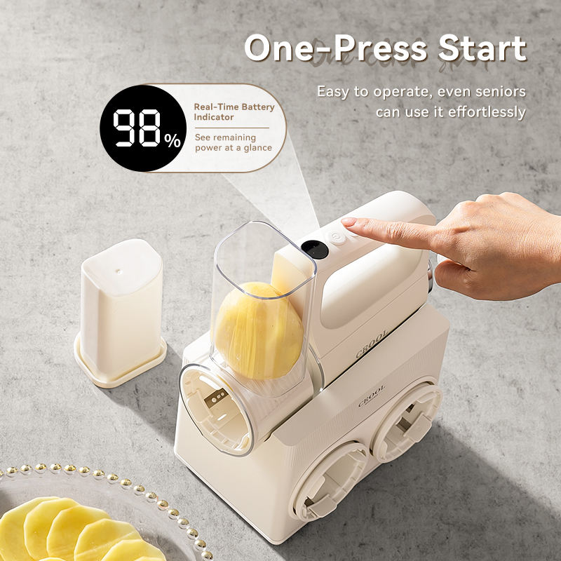 Cortador de Verduras Eléctrico Multifuncional 4 en 1 de Fábrica, Rebanador Manual, Picador de Hielo y Plástico con Función de Corte y Prensado