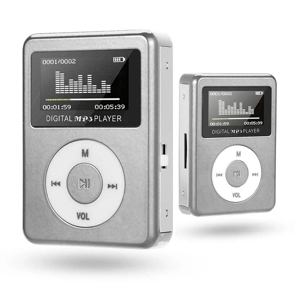 Reproductor MP3 Mini de Aluminio de Fábrica, Pantalla LCD de 1.1 Pulgadas, Ranura para Tarjeta TF, Reproductor de Música Ligero de 18 g, Portátil para Deportes y Uso Diario