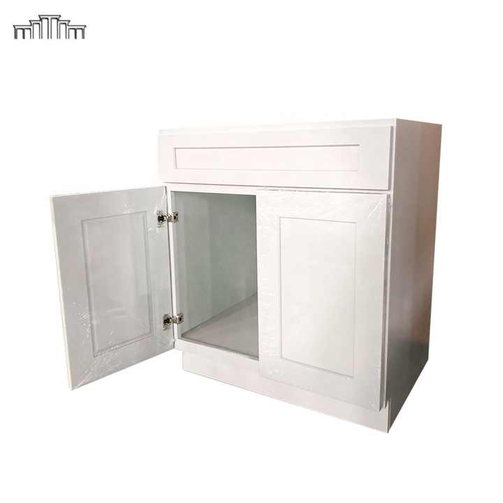 Nombre del producto:Gabinetes blancos de madera reales de la base del fregadero de cocina de la coctelera con el cajón simulado