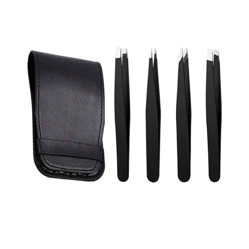 El mejor diseño de fábrica, 4 Uds., duradero, ecológico, de acero inoxidable, pinzas para cejas, bolsa, alta calidad, superventas, juego de tijeras inclinadas