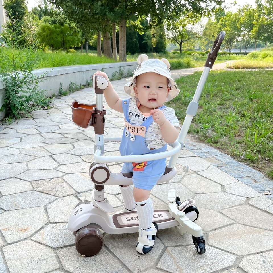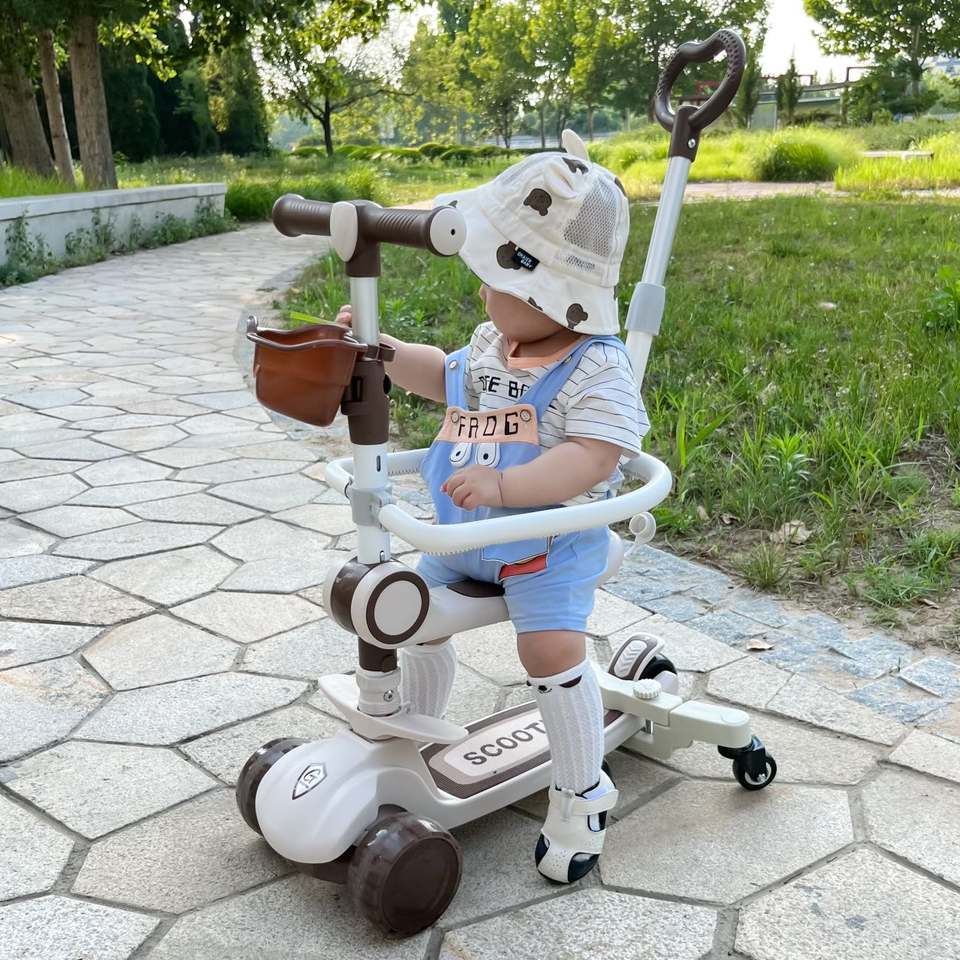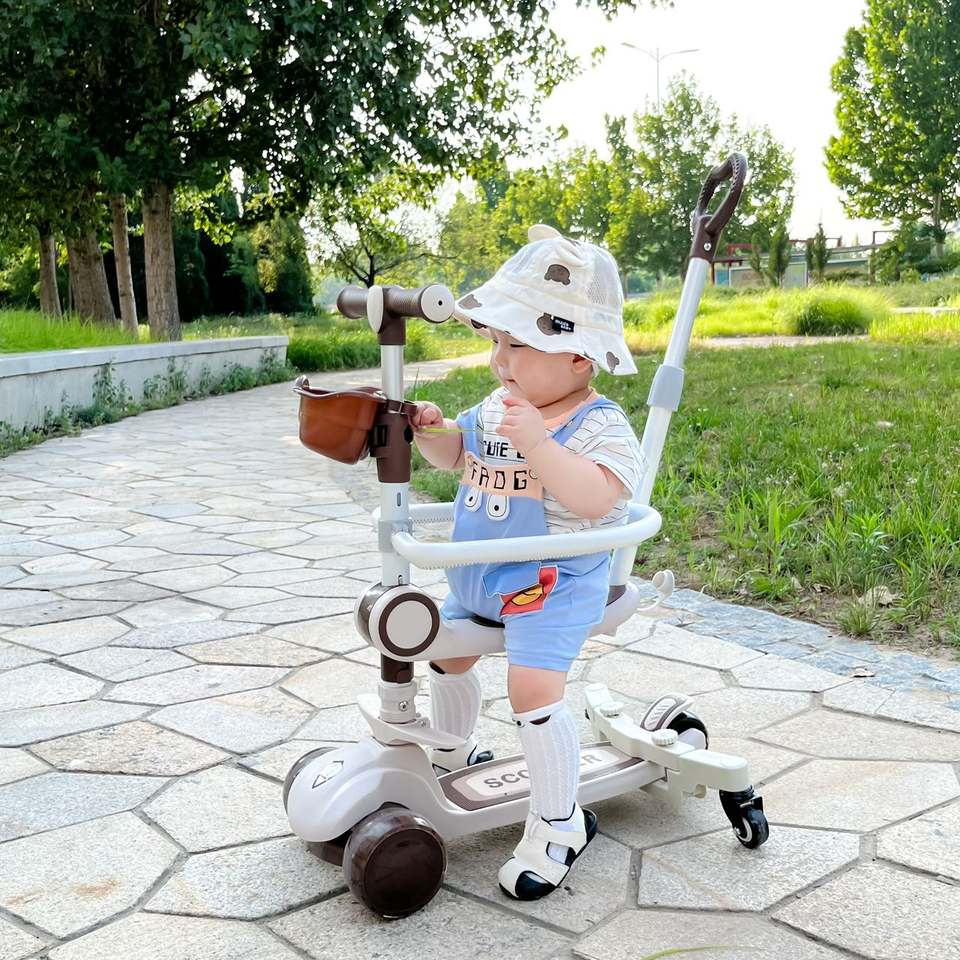 Scooter de Equilibrio para Niños Pequeños con Tres Ruedas de PU, Scooter 5 en 1 con Canasta, Carrito de Equilibrio para Bebés, Mejor Precio de Fábrica
