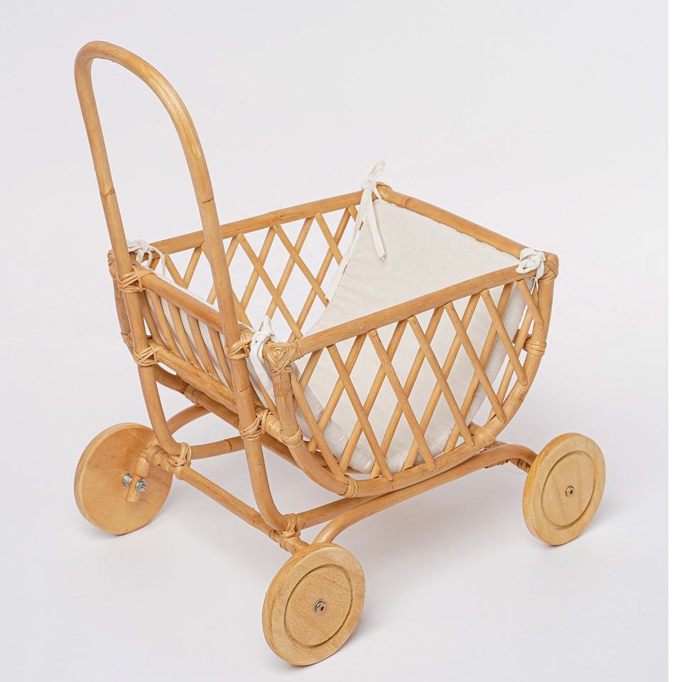 Carrito de mimbre decorativo para habitación de niños, juguete de ratán para fiesta