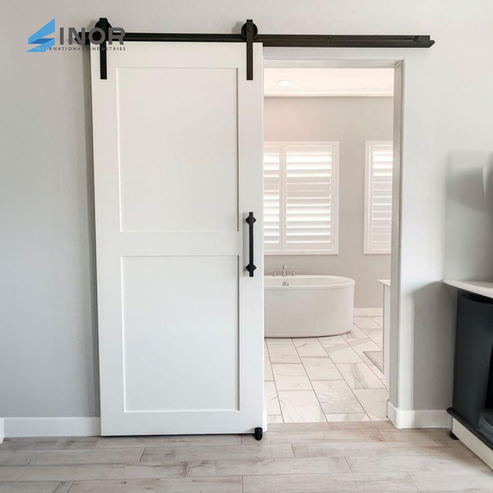 Fábrica moderna de puertas de madera para armario de granero de doble deslizamiento-Diseño minimalista plegable Certificado CE para decoración de baño interior