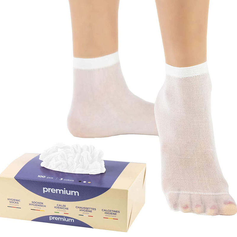 Calcetines de pie desechables higiénicos sanitarios en caja de fábrica, precio bajo barato para probar calcetines para probar zapatos