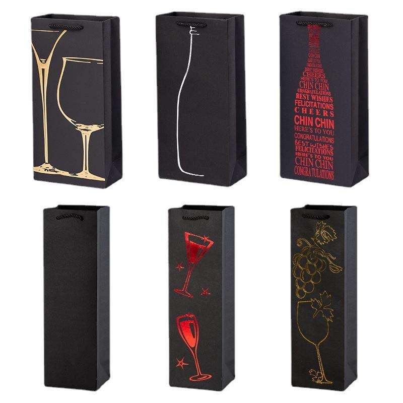 Bolsa de Vino Personalizada con Logotipo, Económica de Fábrica, con Lámina Dorada, Reciclable, con Asa, para Regalo