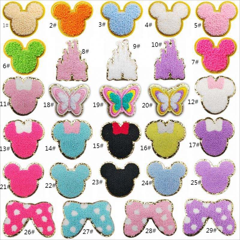 Factory Cheap Fast Delivery Iron on /self Adhesive Chenille Mouse Ear Butterfly Patch for Clothing Hat Bag Decoration