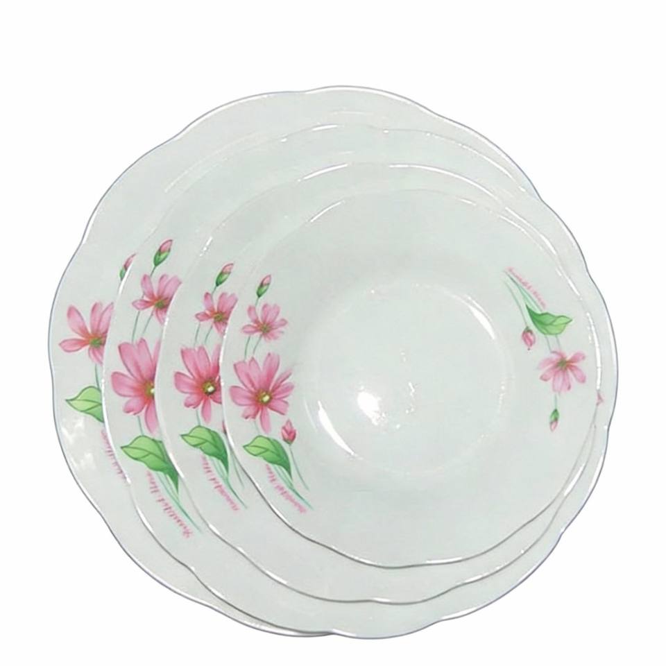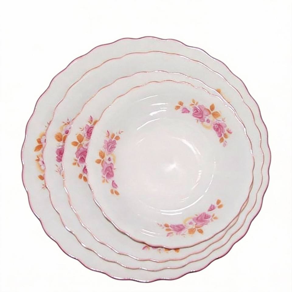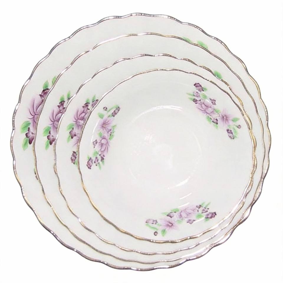 Platos y Vajilla de Porcelana HARVIT Baratos de Fábrica con Borde Tallado y Diseño Floral, con Borde Plateado, para Sopa, Postre y Fiestas