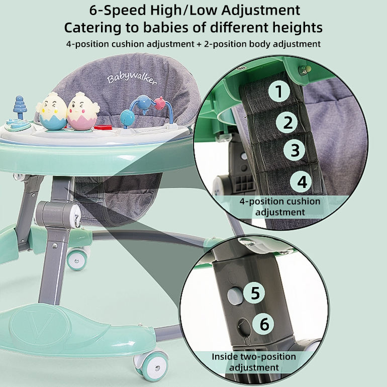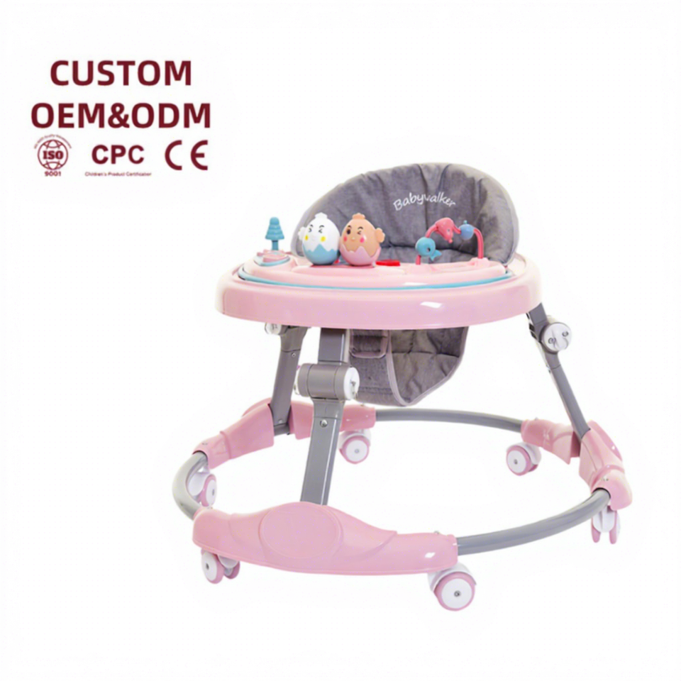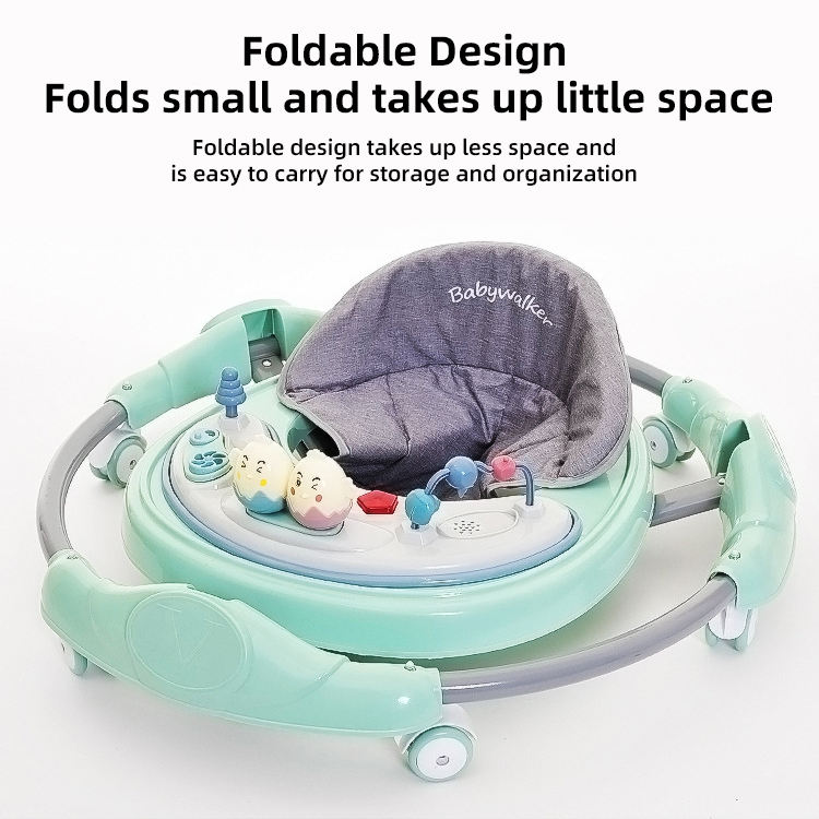 Andador de Actividades de Aprendizaje para Bebé de Fábrica Barato con Luz y Música con Plato de Cena Portátil Andador Plegable Simple para Niños de 6 Ruedas