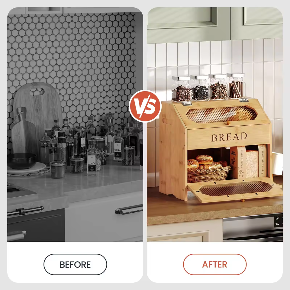 Caja de pan de bambú de doble capa moderna y barata de fábrica con ventanas transparentes ecológica sin BPA duradera para almacenamiento de alimentos de cocina