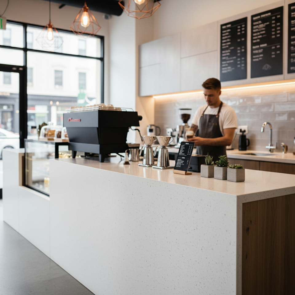 Encimera de Cuarzo de Piedra Artificial Blanca Cristalina de Estilo Moderno y Económico de Fábrica para Isla de Cocina, Barra, Recepción y Tocador