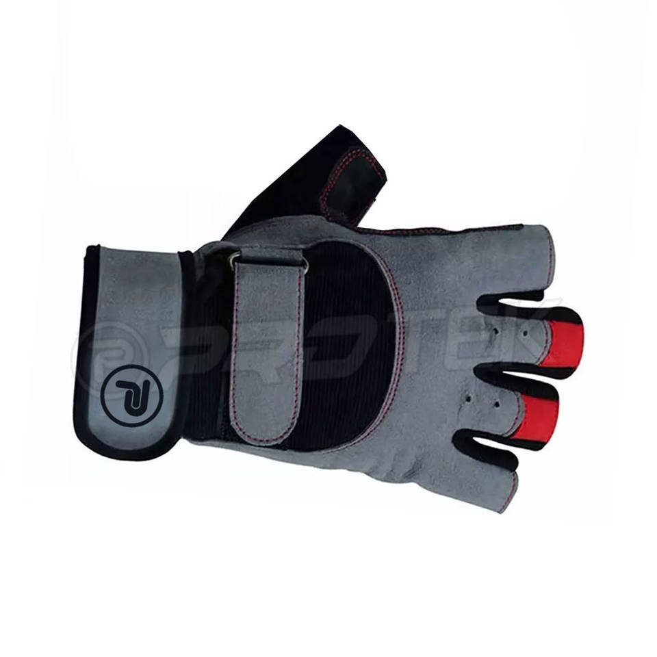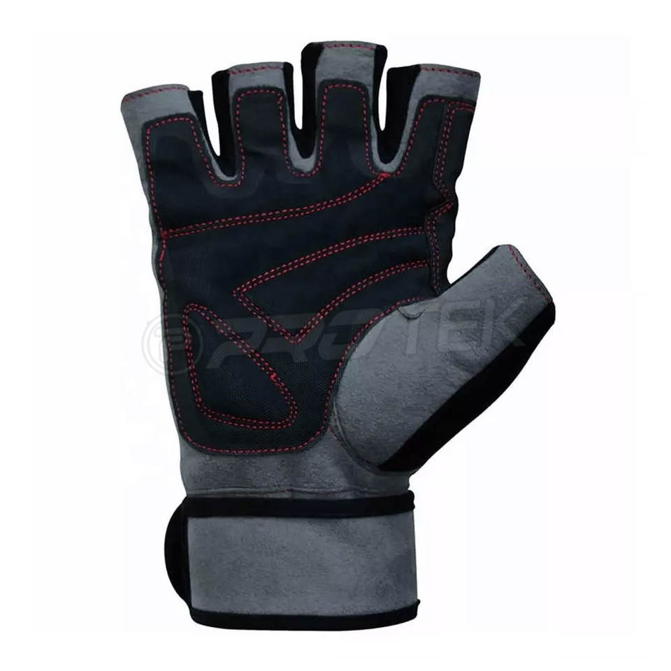 Guantes de cuero de Color gris para levantamiento de pesas, manoplas de seguridad para gimnasio, ejercicio, levantamiento de pesas, precio barato de fábrica
