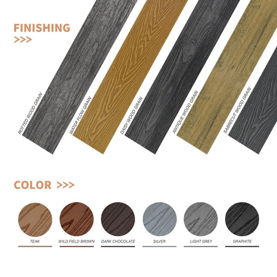 Tratamiento superficial:Suave, GROOVE, Cepillado, Grano de madera, Grano de madera 3D, Co-extrusión, Gofrado 3D, Colores dobles