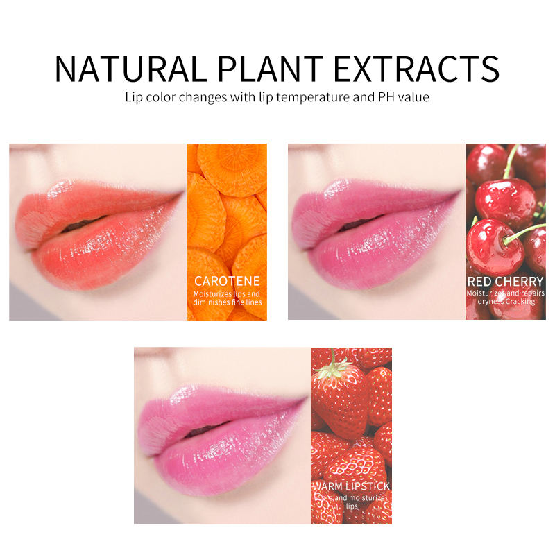 Bálsamo Labial que Cambia de Color, Activado por el PH, con Caroteno Natural y Extractos de Cereza, Hidratante