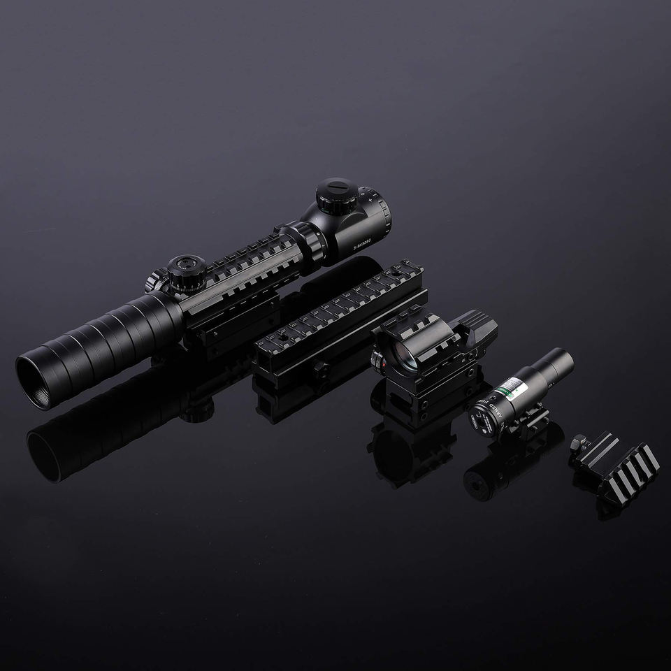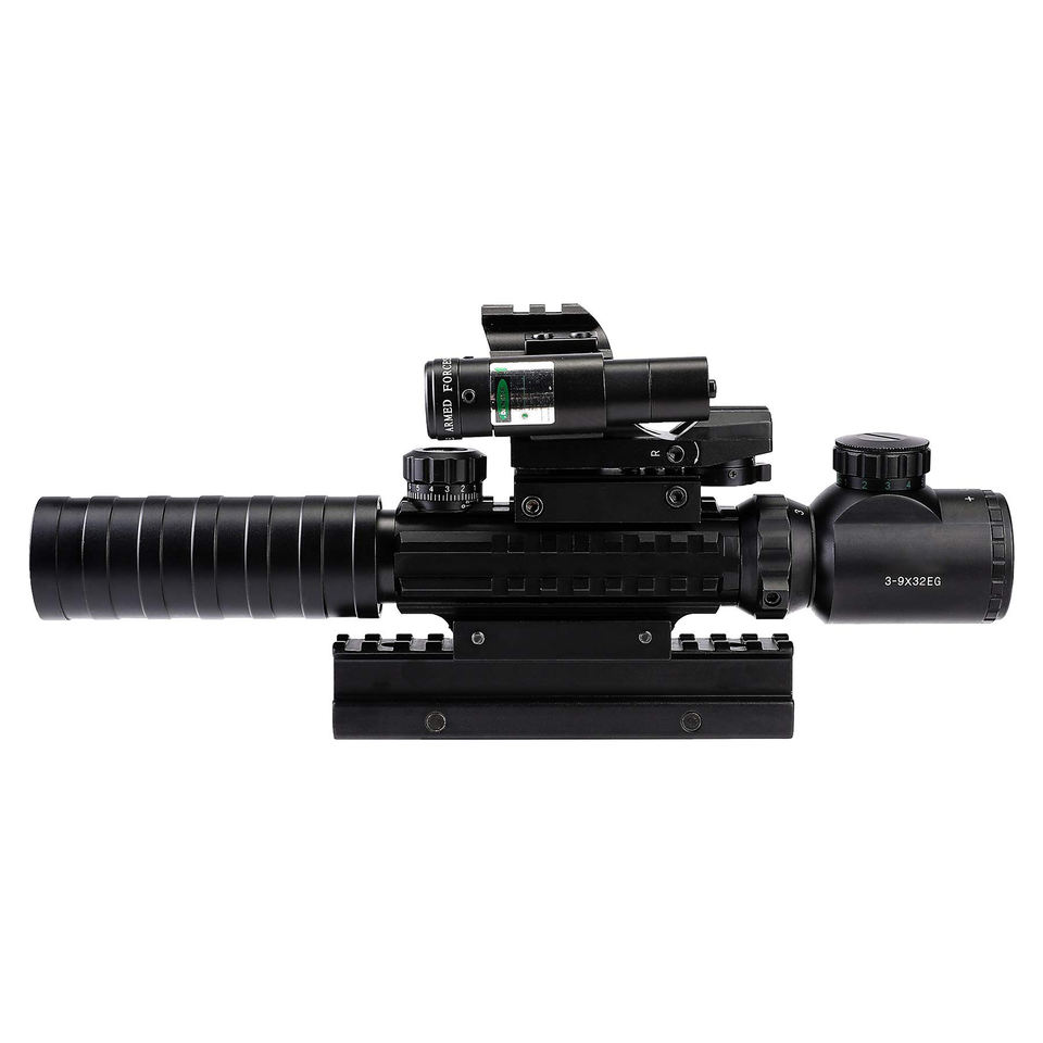 Factory Combo Scope 3-9x32 con High Riser Montaje de 45 grados Iluminado Red Green Dot Sight Green Laser para accesorios ópticos
