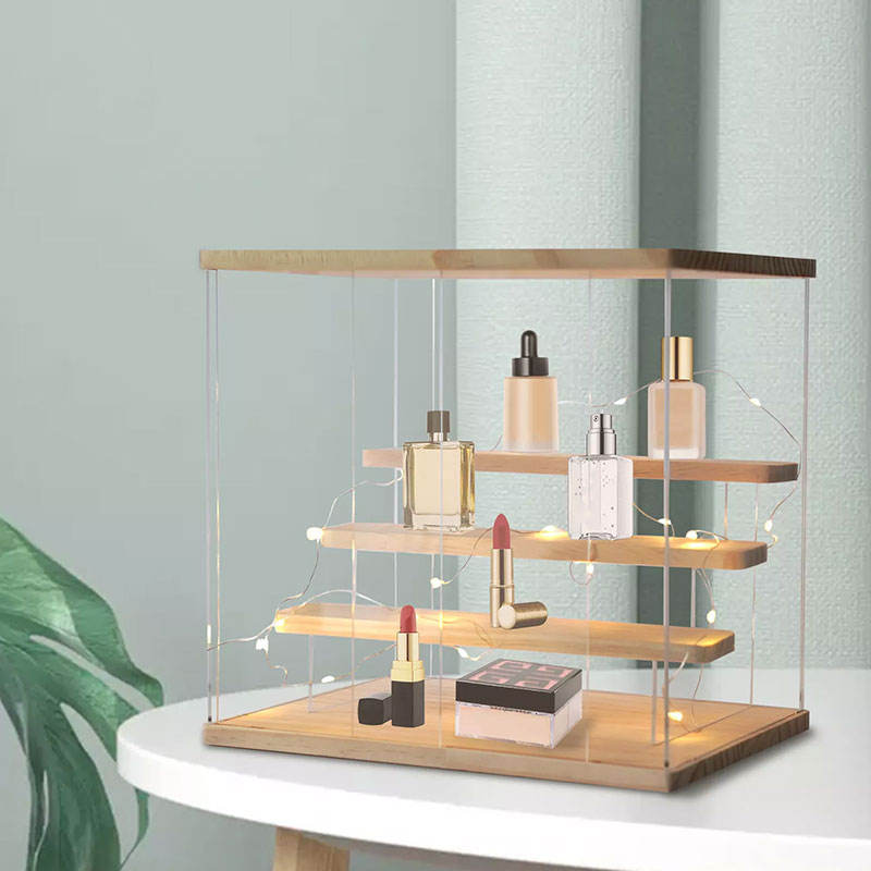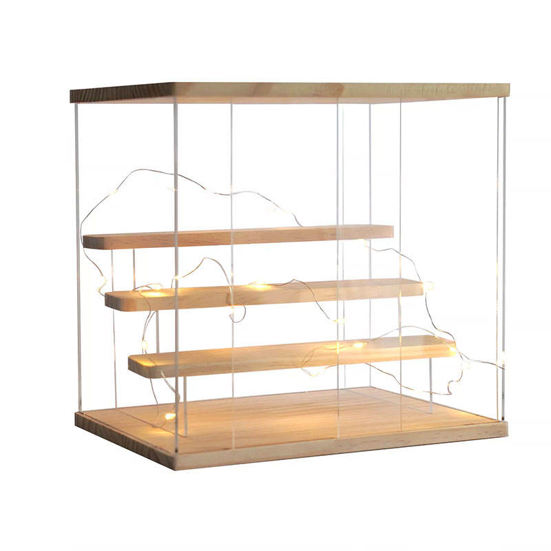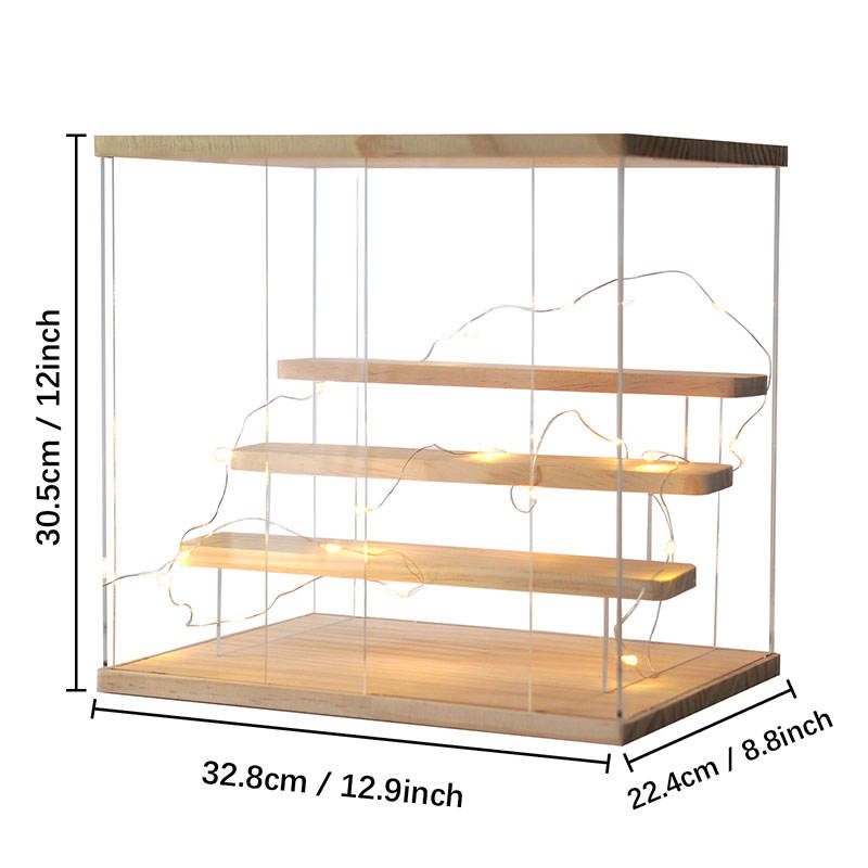 Vitrina acrílica transparente de 3 niveles personalizada de fábrica con organización de luces y escaparate coleccionables o muñecas en estante soporte de exhibición