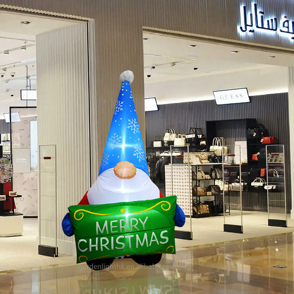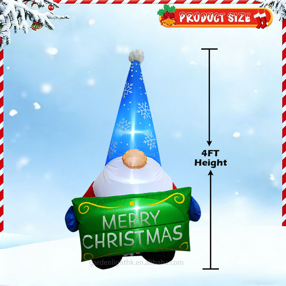 Nombre del producto:Gnomo Inflable de 4 pies para Decoración Navideña con Letrero de Feliz Navidad