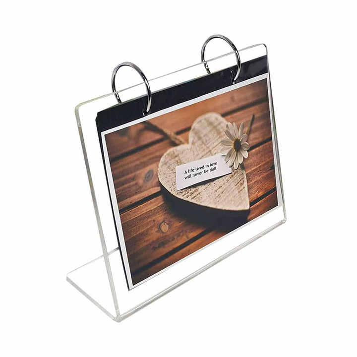 Fábrica personalizada 5x7 Flip acrílico signo titular 3mm plexiglás estantes de exhibición soporte con espalda inclinada Tipo de escritorio