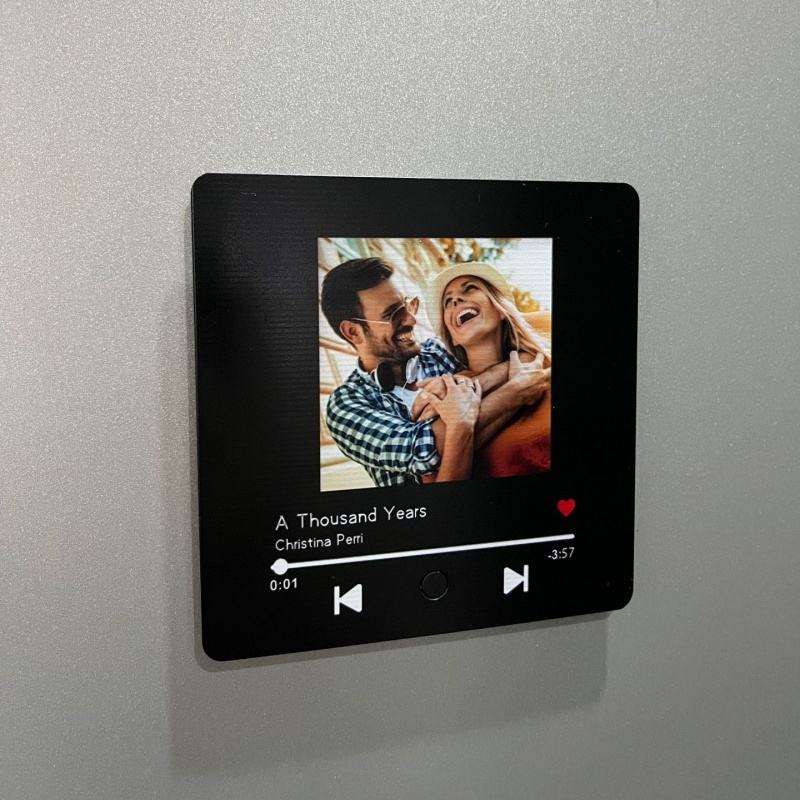 Imán Personalizado para Refrigerador con Reproductor MP3 Acrílico de 10x10x1cm, Magnético, Reproduce Música, Regalo de Año Nuevo
