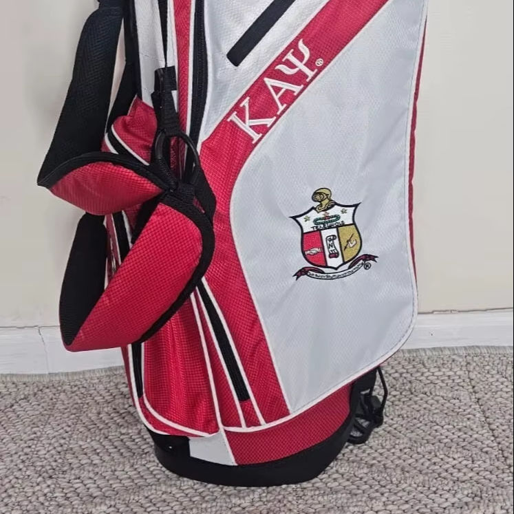 Bolsa de Golf Personalizada Alpha Psi Stand Roja y Blanca con Personalización para Viajes y Transporte de Palos