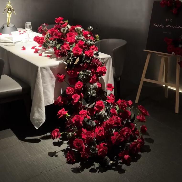 Camino de mesa de rosas rojas de seda artificial personalizado de fábrica para decoración de bodas