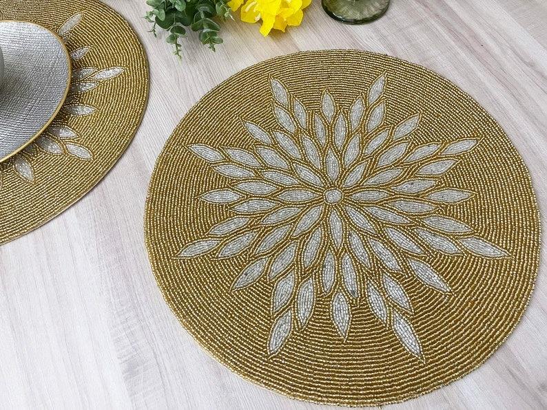 Posavasos de Lujo Personalizado de Fábrica, Bordado con Cuentas, Hecho a Mano, con Cuentas de Vidrio, Diseño de Animales, Mantel Individual, Ecológico, Camino de Mesa para Bodas08