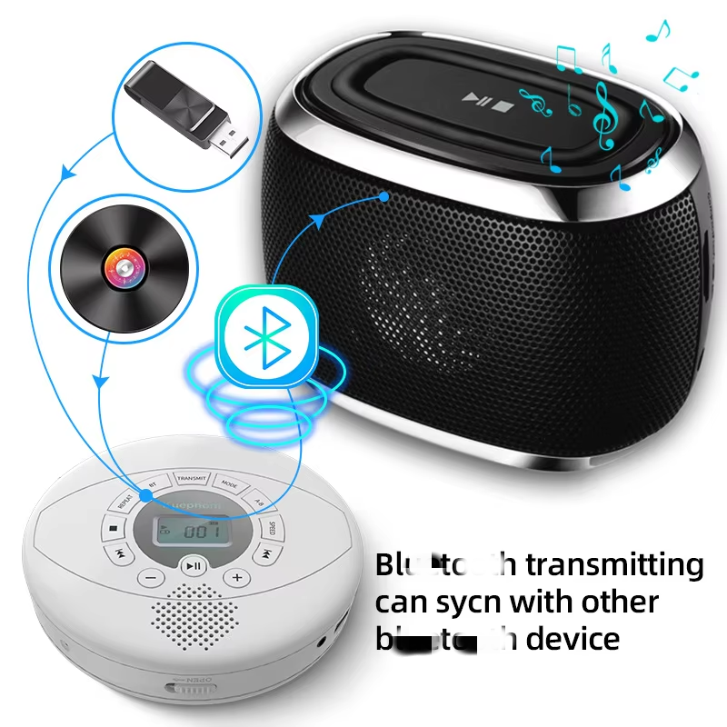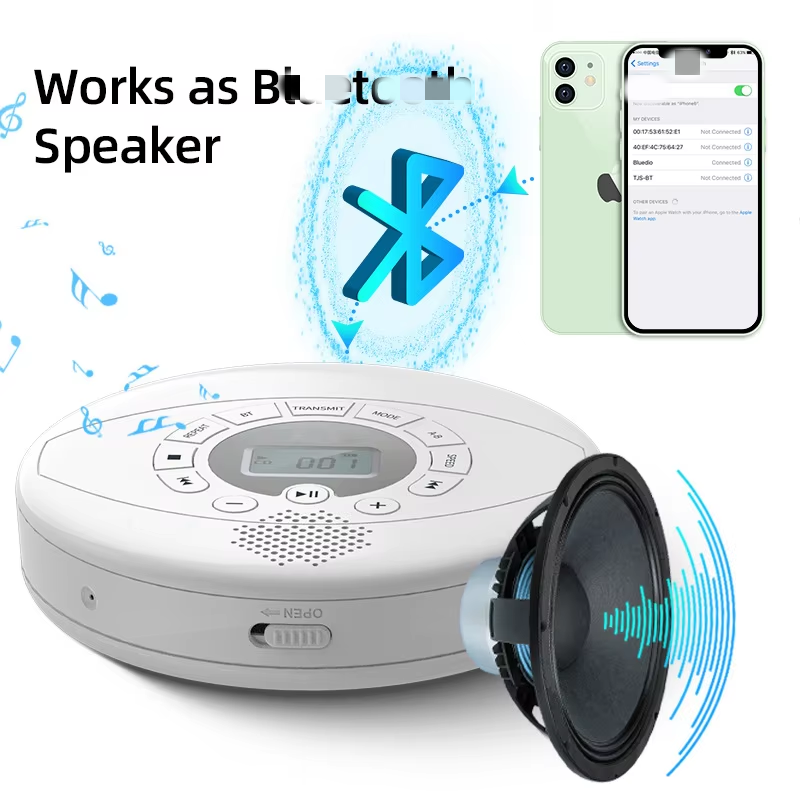 Reproductor de CD Portátil Personalizado de Fábrica, Delgado, con Función de Transmisión y Recepción BT, Entrada USB AUX, Control de Velocidad, para Estudio, Viajes, Auto