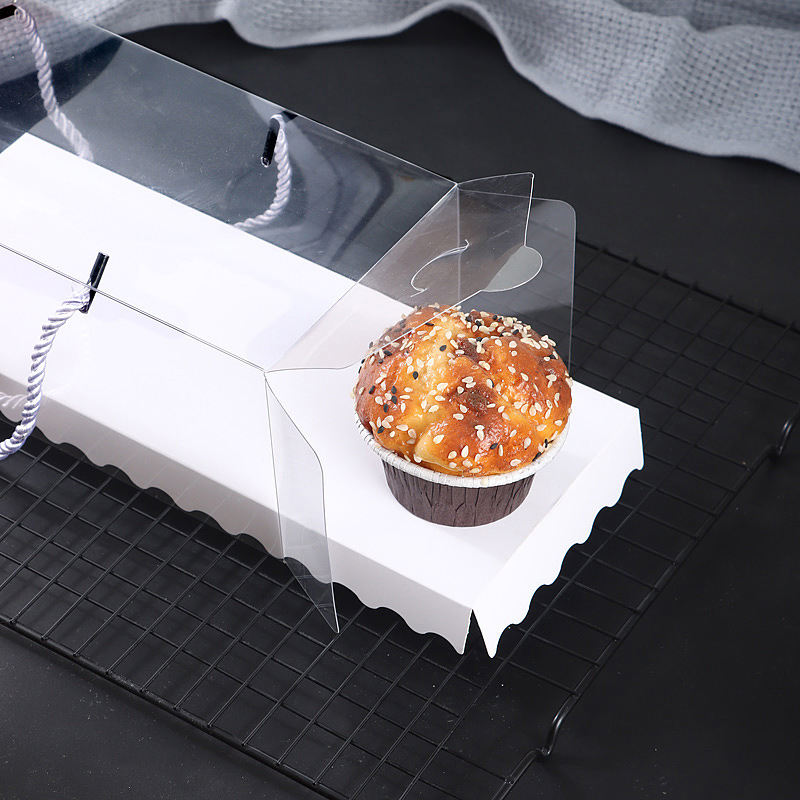 Caja de pastel rectangular transparente desechable de Pvc biodegradable de Navidad personalizada de fábrica para Sushi Sandwich Donut