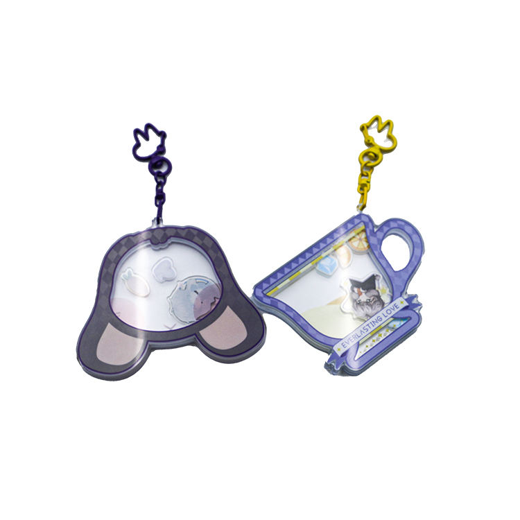 Llavero acrílico personalizado de fábrica con dijes de anime lindos que se agitan, diseño de dibujos animados y gancho de seguridad con forma de animal